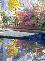 | 昨日は、親友の〇ちゃんと、紅葉が見ごろの小石川後楽園に行って きました。暑くもなく寒くもなく、爽やかな秋晴れで、程よく人がいて、 最高の紅葉日和でした。どこを切り取っても、絵になる風景。背景に は、東京ドームの白い屋根やビル群が見え、都会の中のオアシスと いう感じです。水戸光圀にゆかりのあるこの庭園、江戸時代の大名 庭園として最古だとのこと。高低差を利用して、海や川、山、田園に 見立てた風景が配置されていたり、中国の風物が取り入れられてい たり、と見どころがたくさんあります。現在「深山紅葉を楽しむ」という イベント中で、炭火で焼いた三福団子の屋台も出ていました。ひと串 500円の値段をめぐり、〇ちゃんと買うべきか、やめるべきか、迷い ましたが、結局おいしそうに食べている人達を見て、食べてみること に。わたしは、くるみ入り味噌だれを、〇ちゃんは、きなこ黒蜜だれを 選んで、パクつきました。三福とは「幸福・裕福・大福」だそう。幸福、 だけでも充分なのに、欲張っていますね。〇ちゃんが、学生時代に 一緒に山陰を旅した時の、懐かしい写真を持ってきて、思い出を話し ましたが、それぞれ覚えているシーンが違っていて、「それ、わたし、 まったく覚えていない!」というのが多くて、面白かったです。ながい 付き合いのわたし達ですが、来年の古希を前にして、二人共元気で 庭園を歩けるのは、幸せなことです。以前、小石川植物園を訪れた 時には、雨で濡れた石にすべって、〇ちゃんが擦り傷を負ってしまっ たので、昨日はごつごつした石作りの階段を踏み外さないよう、二人 とも慎重にゆっくり進みました。最高のひとときを過ごせましたよ。 |