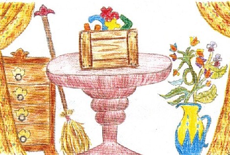 いることに気づきました。魔女は、白い歯を見せて笑うと、木箱の中を指差しました。